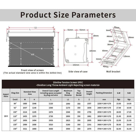 Vividstorm ALR Slimline Motorized Tension Obsidian Long Throw ALR Projector Screen